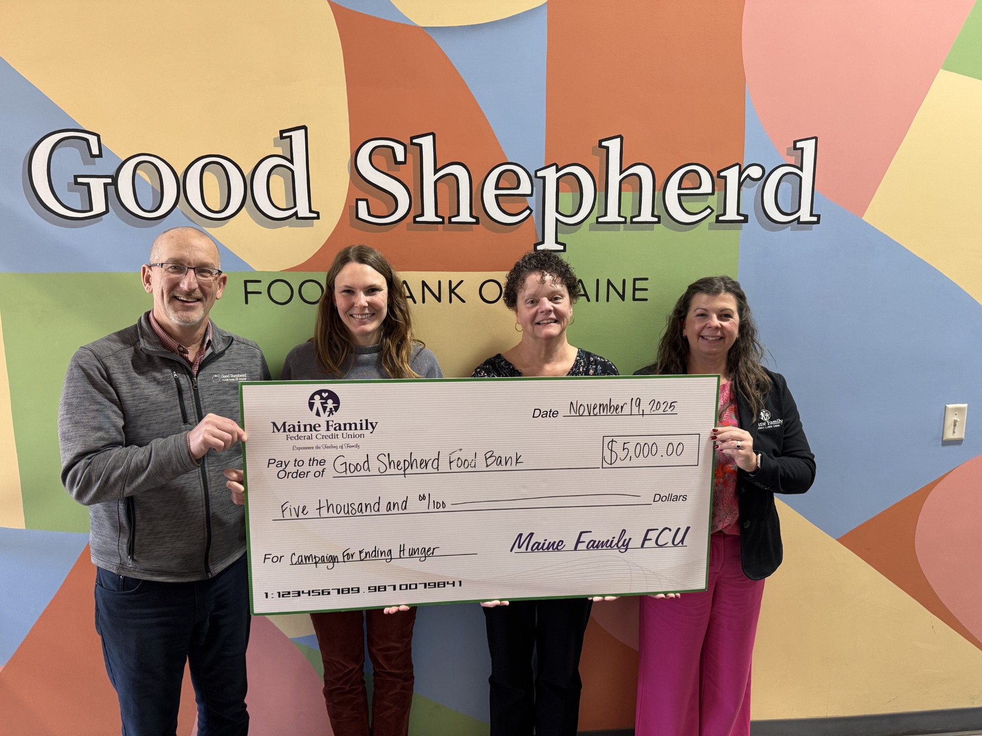 Maine Family Federal Credit Union is proud to announce three $5,000 donations to Good Shepherd Food Bank, High Street Food Pantry, and Seniors Plus. These contributions were made possible through funds raised as part of the credit union’s participation in the Campaign for Ending Hunger, a statewide initiative led by Maine’s Credit Unions to combat food insecurity.